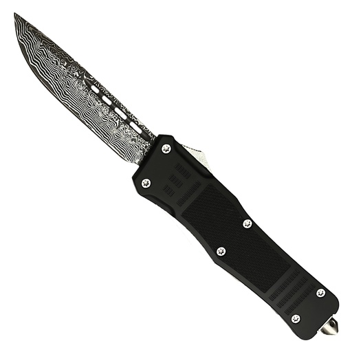 Damascus Contrast Quick-Deploy OTF Knife - Matte Black