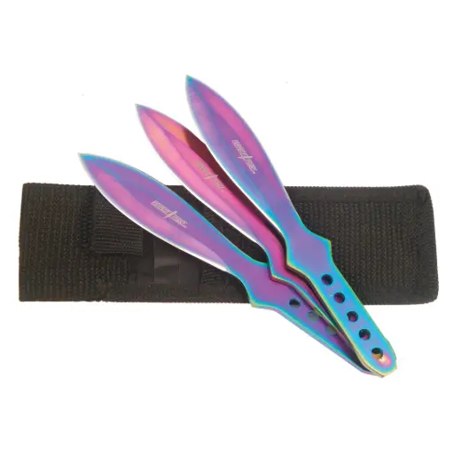 Prism Strike Double-Edge Throwing Knife Set - Rainbow Steel