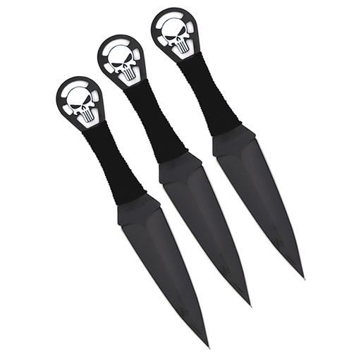 Punisher Skull Triple-Flight Throwing Knife Set - Matte Black Steel