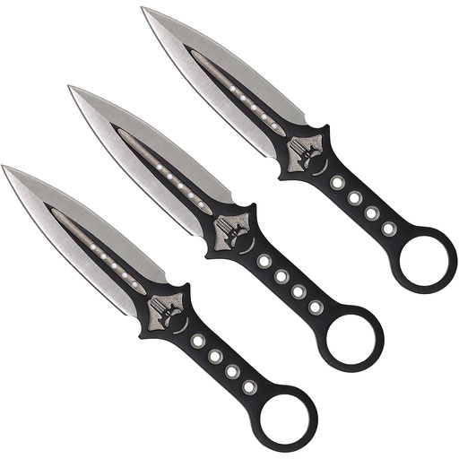 Skull Reckoner Balanced Throwing Knife Set - Matte Black