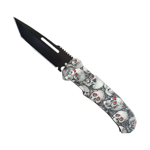 Red-Eye Reaper Tanto Automatic Knife - Matte Black Skull
