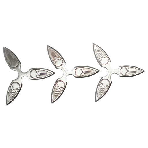 Skullmark Balanced Quad-Point Throwing Star Set - Silver